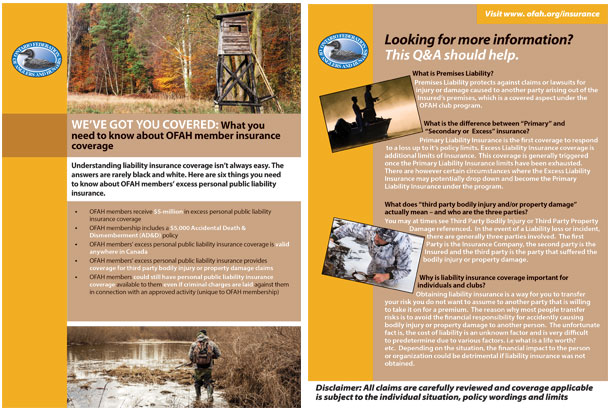 - OFAH members could still have personal public liability insurance coverage available to them even if criminal charges are laid against them in connection with an approved activity (unique to OFAH membership)